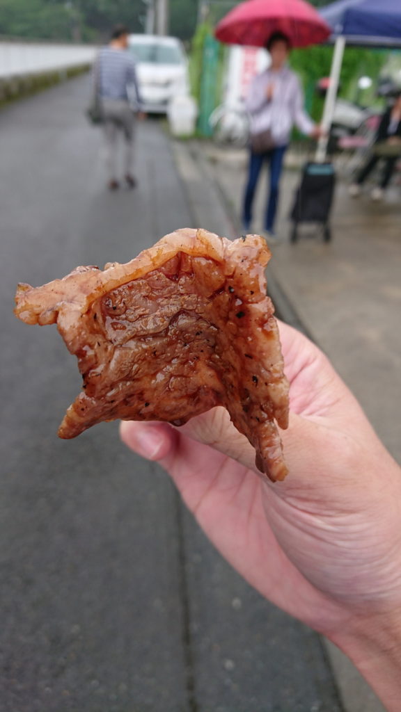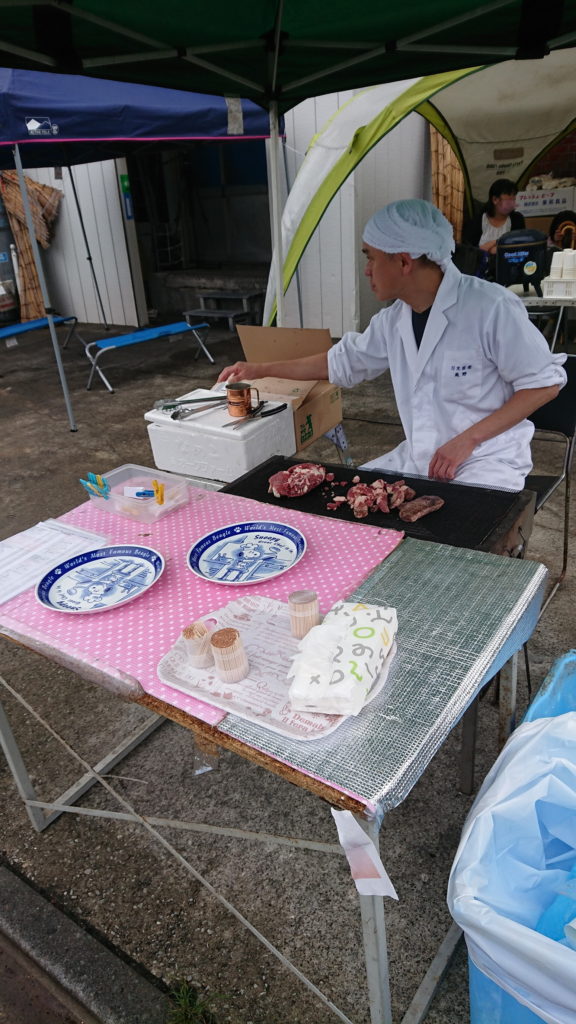 と思ってたら日光畜産さんが試食のお肉を焼き始めました。