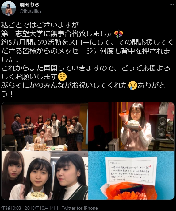 そんな幾田りらさんがツイッターで大学生になりましたと2019年4月に入学式の写真と共にツイートしたのです。